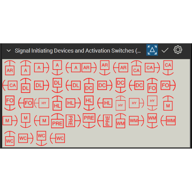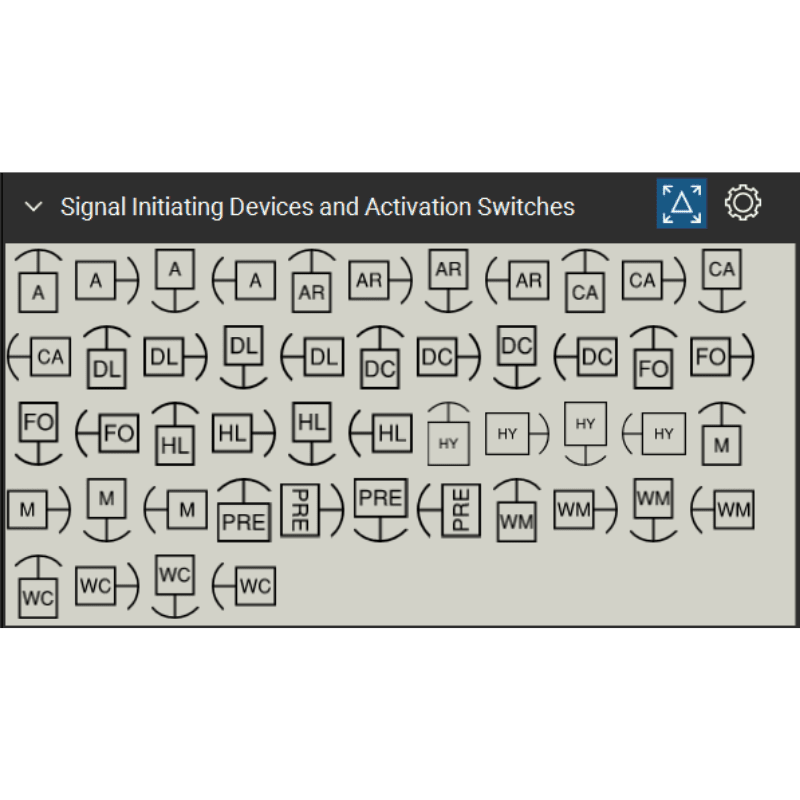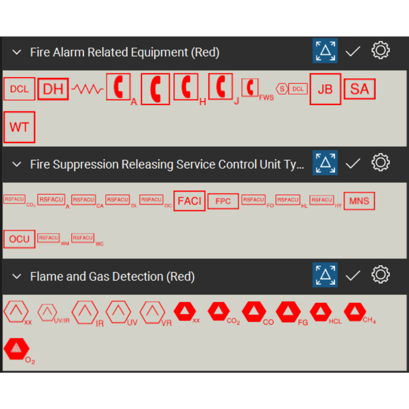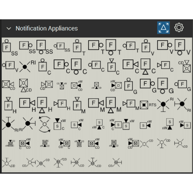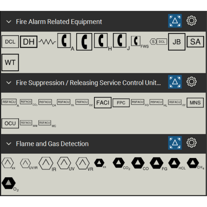 - 13 symbolic tool sets for Fire Alarm Systems